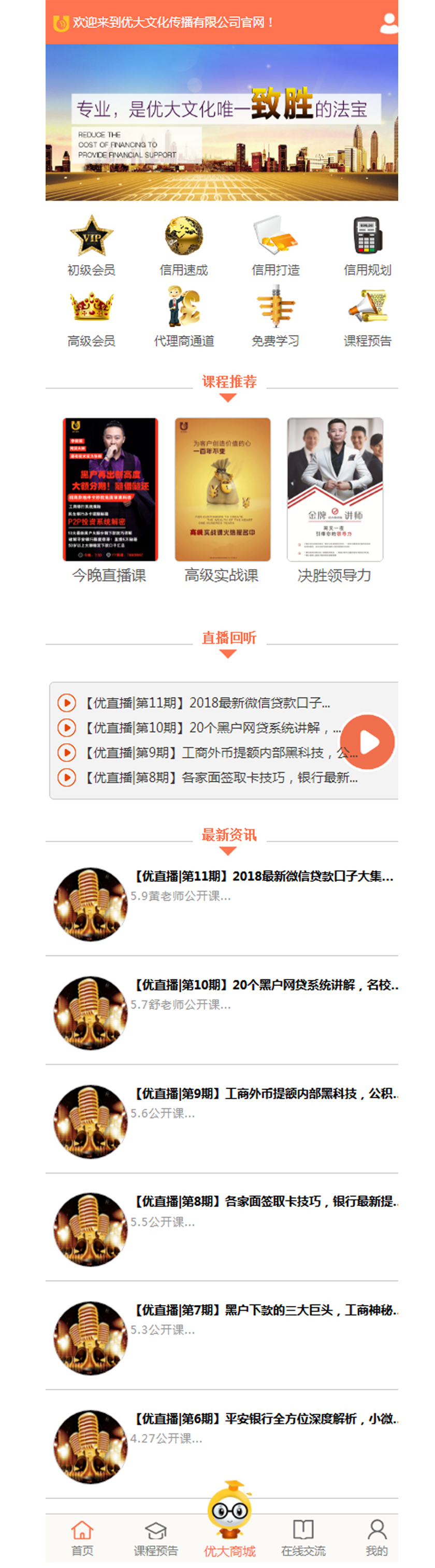 优大文化信用财商商学院一直秉持着五年内帮助十万学员实现财富自由这一愿景,坚持以为社会传播信用,传播财商,为选择相信我们的客户创造价值为宗旨,帮助更多信用卡用户提升信用等级,根据学员自身信用情况打造个人信用资产0...